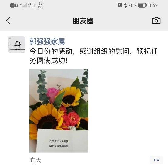 “真的很惊喜,没想到远在海口都能收到组织送的花!感谢党,感谢组织!逢年过节的问候、点点滴滴的关怀,太有心了!”马亚奇的家属如是说。