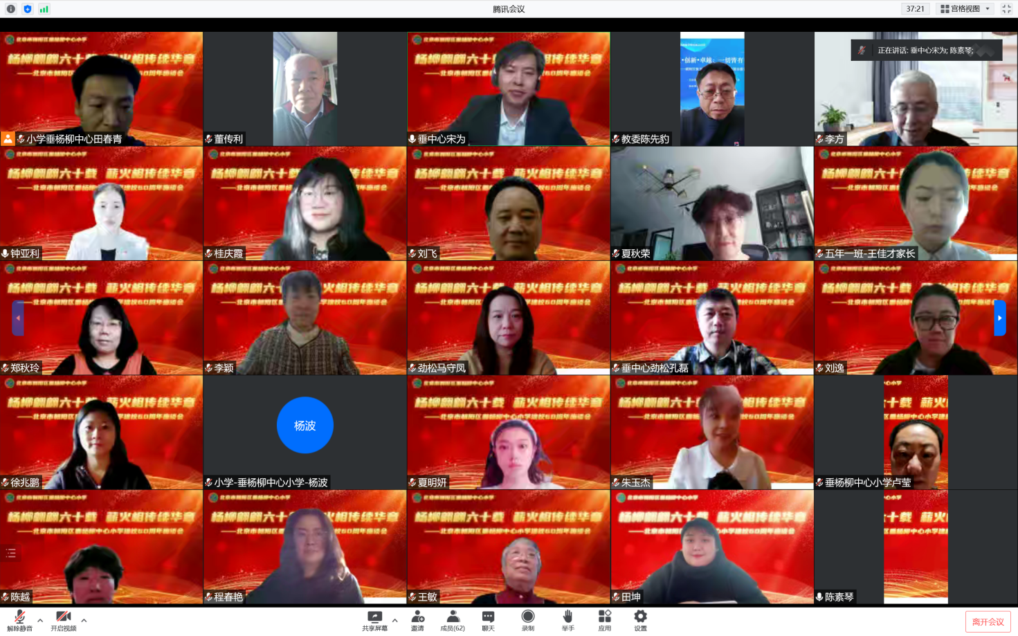 杨柳翩翩六十载,薪火相传续华章。北京市朝阳区垂杨柳中心小学迎来了建校60周年。2022年12月30日上午,北京市朝阳区垂杨柳中心小学建校60周年座谈会在线上举行。北京市教育学院原党委副书记、院长李方,北京师范大学教育学博士、人民政协报教育周刊创办人、主编贺春兰,朝阳区委教育工委副书记王世元,朝阳区委教育工委委员、朝阳区人民政府教育督导室副主任陈先豹,朝阳区教师发展学院党总支书记刘飞,垂杨柳中心小学老校长王敏,以及一直关心学校发展的董传利、夏秋荣、穆英等专家和垂杨柳学区、垂杨柳中心小学教育集团的干部代表,师生、家长代表在云端参与了此次活动。活动由垂杨柳中心小学校长宋为主持。