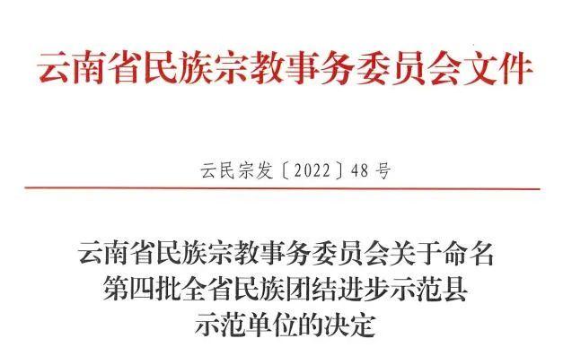 日前,云南省民族宗教委发布《关于命名第四批全省民族团结进步示范县示范单位的决定》,嵩明县成功命名省级第四批民族团结进步示范县,嵩明县小街镇人民政府、小街镇积德清真寺、昆明雄风电力工程有限公司成功命名省级第四批民族团结进步示范单位。
