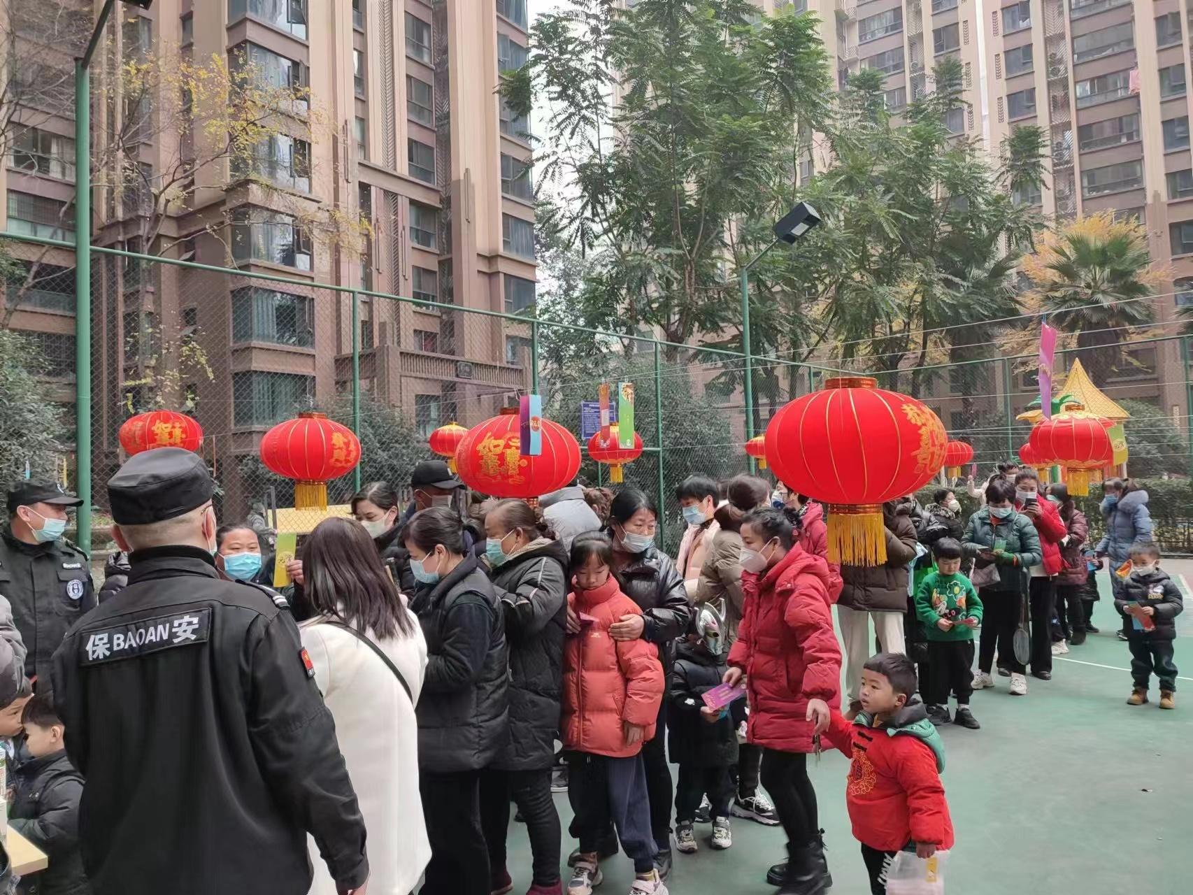 现场还举行了“猜灯谜”活动,谜语内容从脑筋急转弯到猜字谜、猜俗语、猜地名等,涉及知识面广、趣味性强。上至七八十岁的老人,下至四五岁的儿童都积极动脑筋猜灯谜,不时有人猜对谜底引起一片欢呼声,猜中灯谜的居民将灯谜取下,到兑奖处领取精美的奖品。 “欢乐又喜庆,不仅重温了中国传统文化,还收到了春联、福字,收获满满。”不少居民表示此次活动让大家切身感受传统习俗团圆热闹的氛围,同时增进了邻里间的感情。