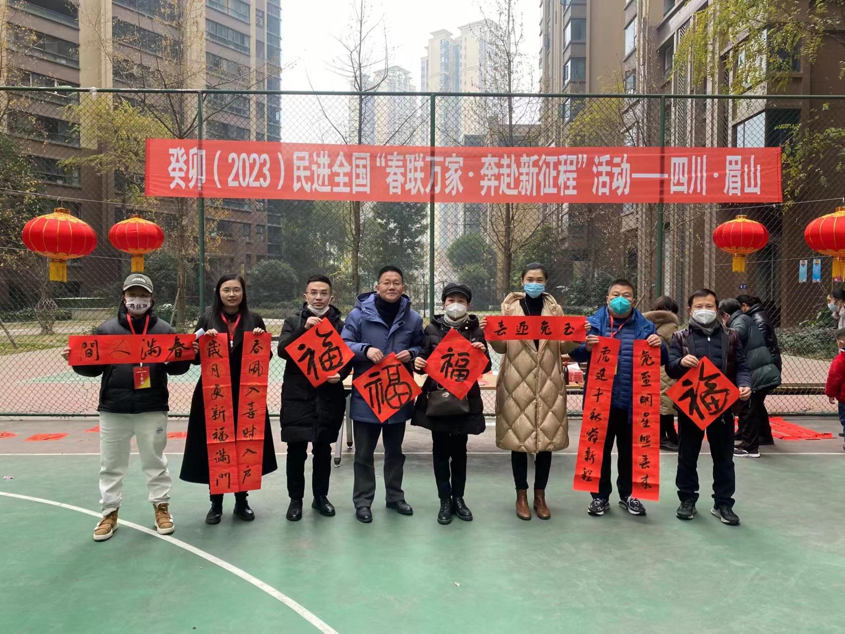 当天,民进眉山市委在城区香颂城小区开展癸卯(2023)民进全国“春联万家·奔赴新征程”活动,免费为居民写春联、福字,表达新春的祝福。
