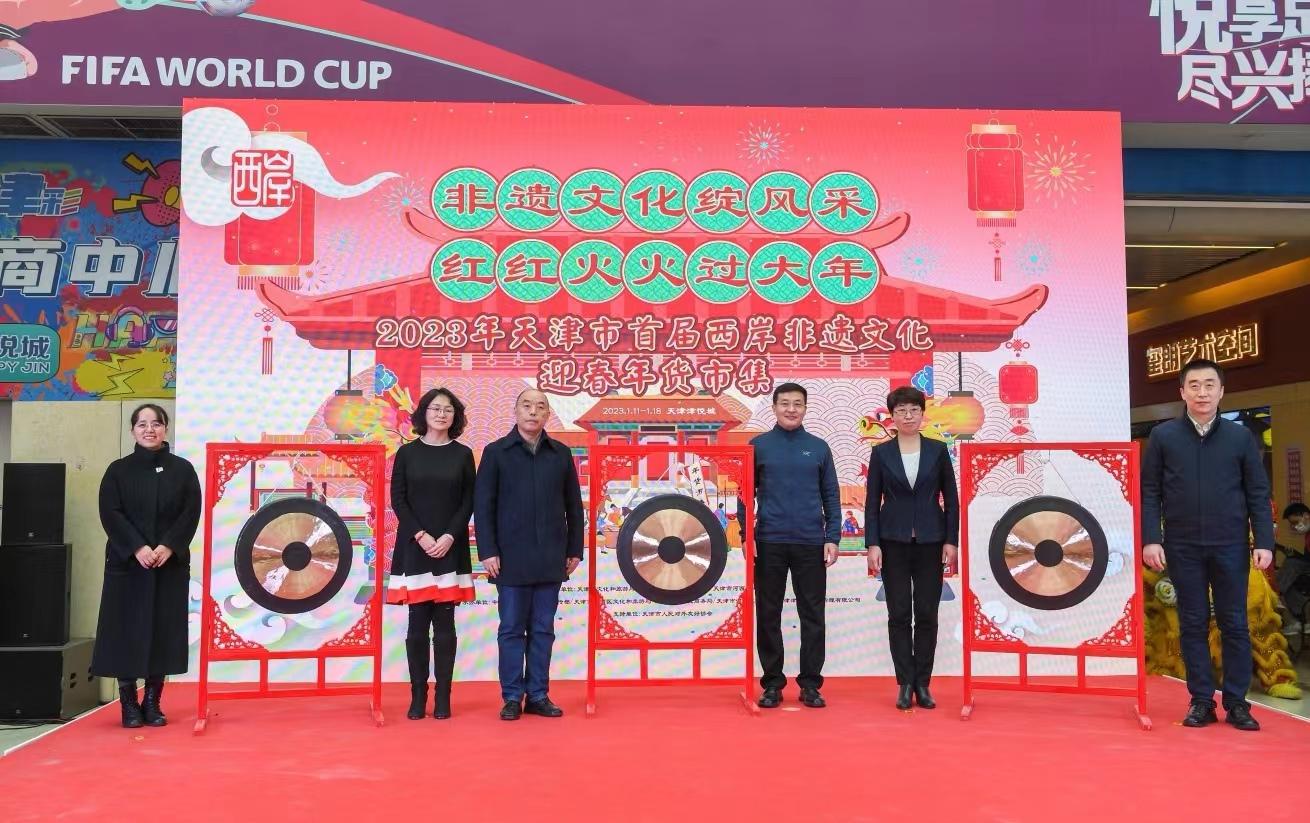 2023年1月11日下午,随着阵阵鸣金开市,“非遗文化绽风·红红火火过大年”2023年天津市首届西岸非遗文化迎春年货市集在天津津悦汇正式启动。