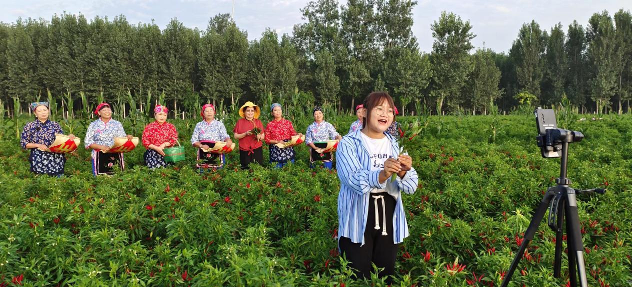 “内黄新一代辣椒是我们在辣椒种植过程中改良的新品种,具有辣味极浓、品质佳等特点……”,内黄县妇联党组成员张雪玉通过直播平台向网友介绍内黄辣椒。
