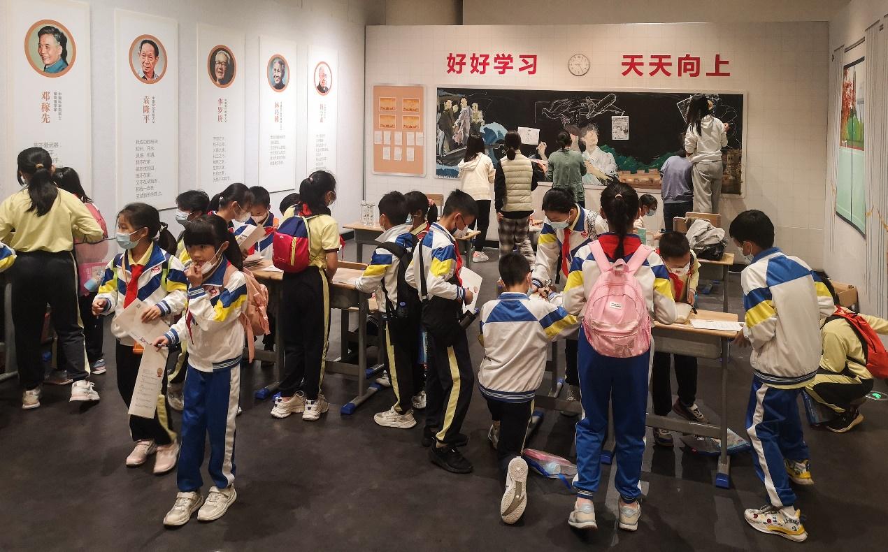 “香山风物”多元的社教活动既有大众参与型,也有专业精品型,充分发挥了博物馆的教育功能,尤其是发挥了针对青少年群体的“第二课堂”作用。如今年9月,“文教开先风——中山教育特展”开幕时,同步推出了香山风物系列活动之“教育文化活动月”。有超过14000人次参与到展览的“打卡有礼”与“铁粉计划”盖章互动中。展览中,观众们在展览折页的指引下,探寻中山教育故事,认真答题投入其中的他们也成了展览里一道亮眼的风景线。同时,共有11个学校研学团,超过400名学生前往博物馆,进行了包含主题导赏与研学卡创作环节的研学活动。展览中也特别留出一面展墙,展示学校研学团的优秀创作。学生们源源不断、充满创意的创作,让中山教育特展成为馆校共创,不断生长的展览。