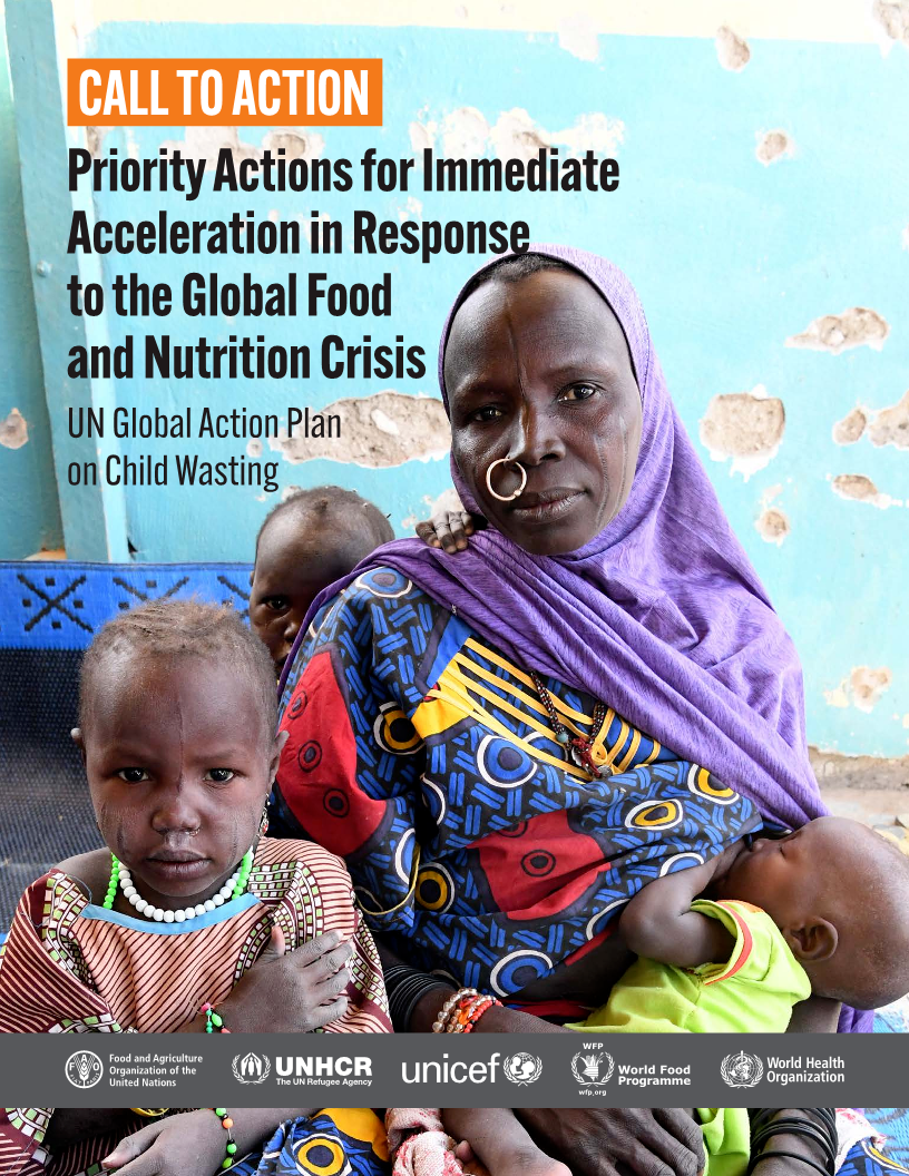 为此,联合国粮食及农业组织(粮农组织)、联合国难民署(难民署)、联合国儿童基金会(儿基会)、世界粮食计划署(粮食署)和世界卫生组织(世卫组织)等五家联合国机构联合呼吁加快推进《儿童消瘦问题全球行动计划》,以预防、发现和应对受影响最严重国家的儿童急性营养不良问题,包括阿富汗、布基纳法索、乍得、刚果民主共和国、埃塞俄比亚、海地、肯尼亚、马达加斯加、马里、尼日尔、尼日利亚、索马里、南苏丹、苏丹和也门。