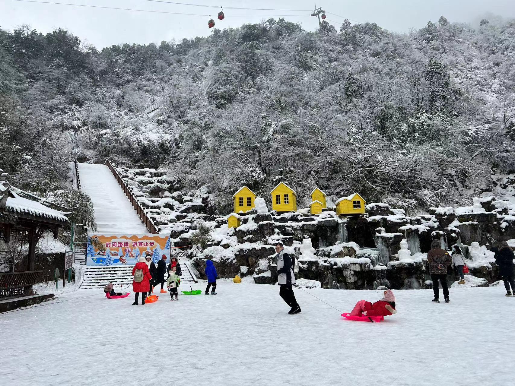春节期间,四川省冰雪游受追捧,人们走出家门,置身于南国冰雪美景中,看传统民俗表演、赏雪玩儿雪滑雪,以多彩活动过新年!眉山市洪雅县瓦屋山景区就以“瓦屋冰雪季 兔年送大吉”为主题,策划推出传统舞狮、萌宠巡游为特色的落地活动表演,吸引了众多游客前往打卡。
