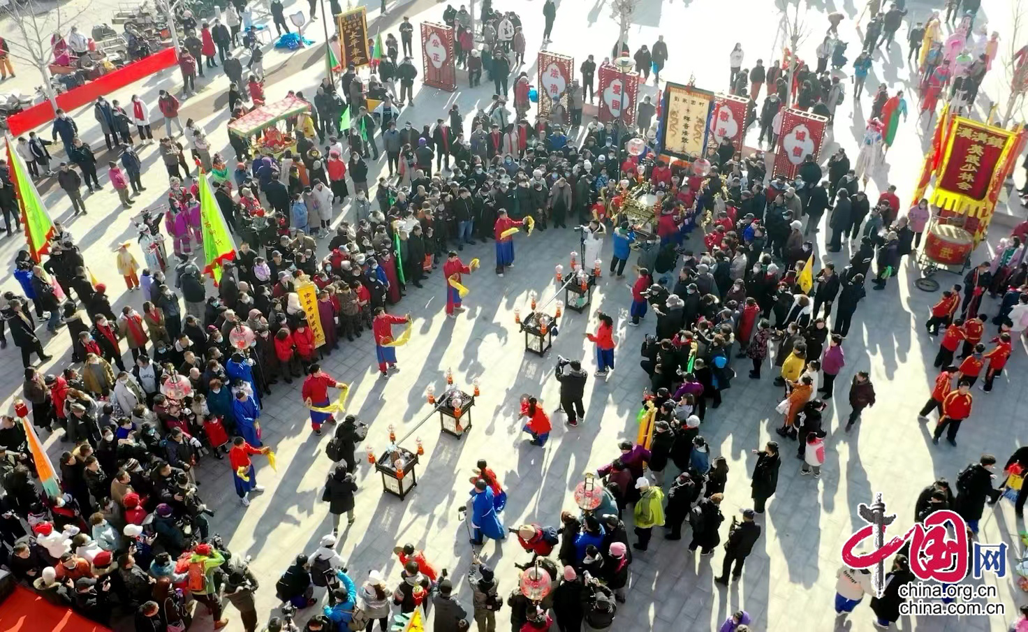 在双口镇中河头村党群文化广场上,近百名民间文艺团队成员和非遗民间艺人组成表演队边走边演,刘园祥音法鼓、王秦庄同议踩高跷、西柳行小车会等项目轮番上阵,铿锵的锣鼓声引来周边群众驻足观看,头戴面具,身着戏服的演员们把角色表演的惟妙惟肖,引来大家的阵阵喝彩。