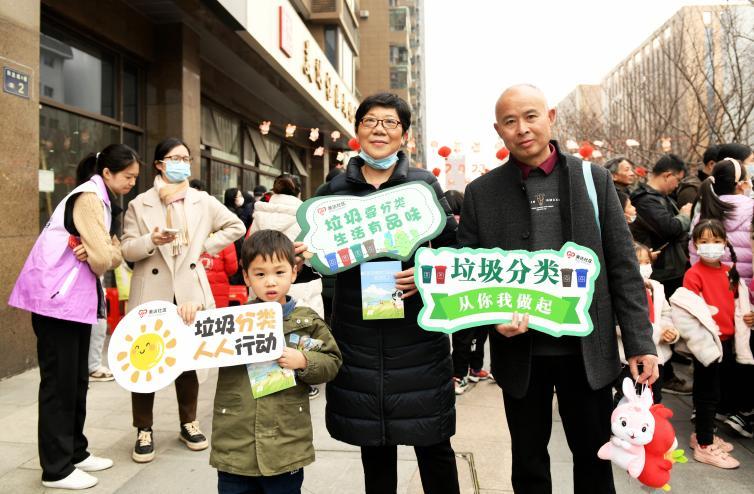 “垃圾要分类,生活有品位。”一对来自美达社区的爷爷奶奶手持宣传牌,让他们的小孙儿大声的读出标语内容,随后奶奶抱住小孙儿说“回家后也要让爸爸妈妈做好垃圾分类。”