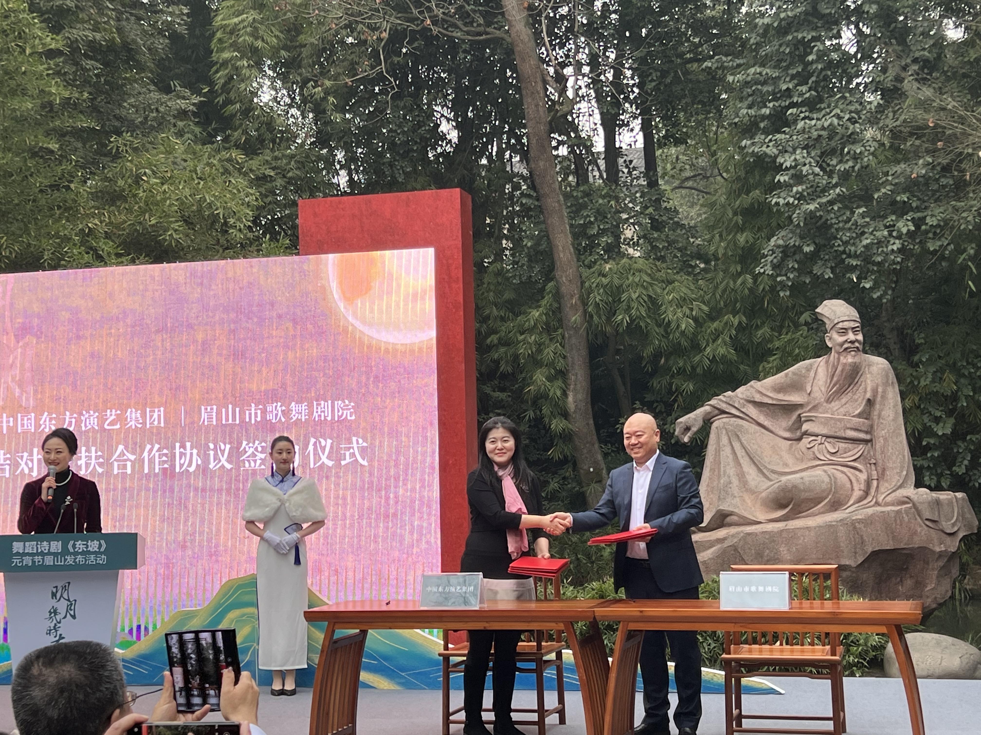 会上,中国东方演艺集团与眉山市歌舞剧院签署结对帮扶合作协议。