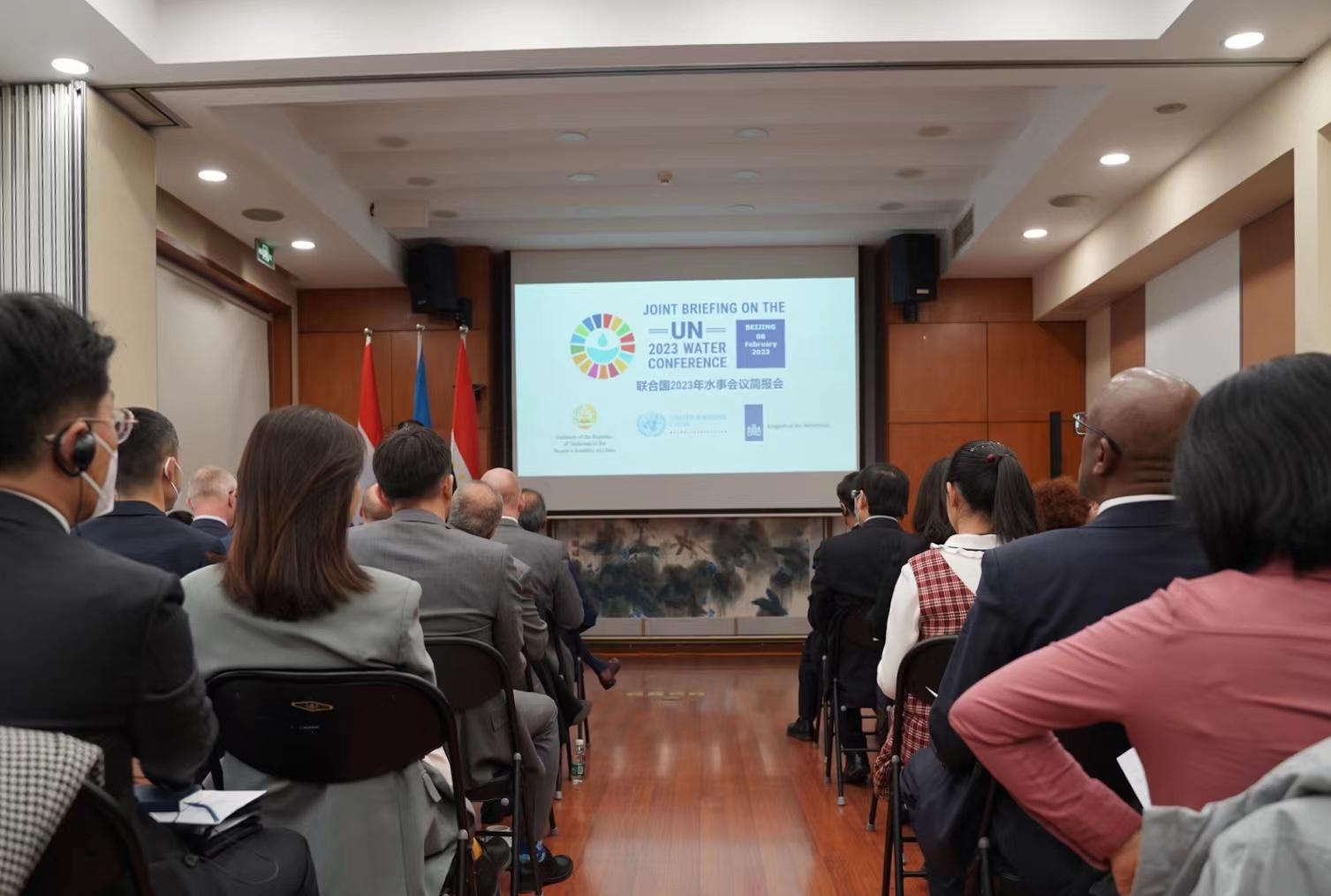 2023年2月8日,荷兰驻华大使馆、塔吉克斯坦驻华大使馆和联合国驻华系统在北京联合国大楼共同举办联合国2023年水事会议联合简报会,来自有关国内机构、国际组织、外交使团和新闻媒体的130余位嘉宾通过线下或线上的方式出席。