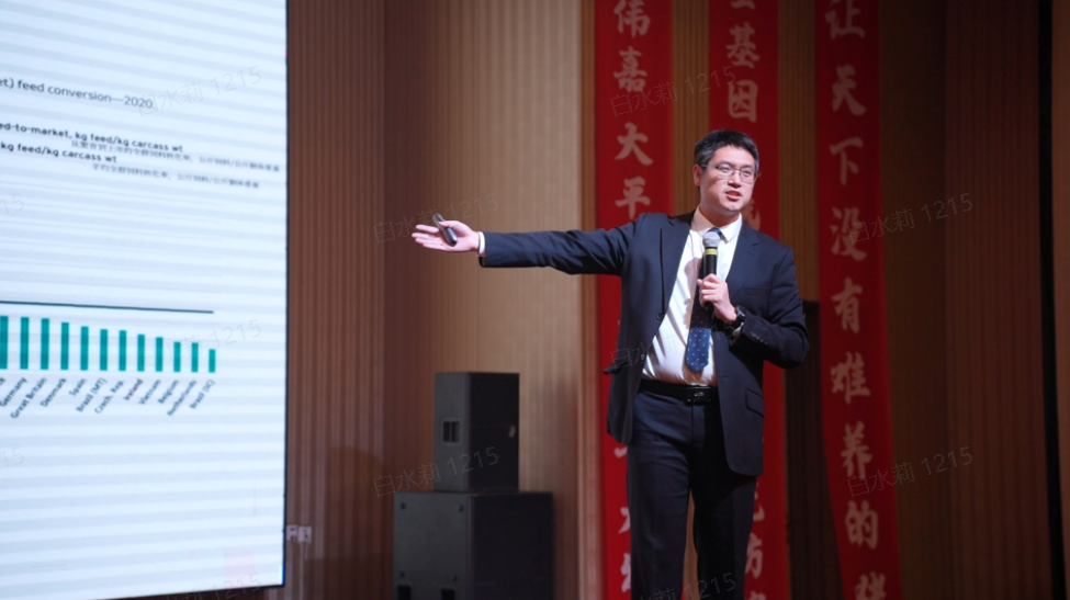 联合攻关,育种增效。中国农业科学院北京畜牧兽医研究所研究员、全国生猪遗传改良计划专家组副组长王立贤作了《育种是降本增效的最佳途径》主题报告。他指出,目前我国生猪生产水平比发达国家至少低30%,成本高40%,如果我国母猪生产能力提升至欧盟水平,母猪存栏量最多可减少1500万头,节省大量粮食资源。在种猪育种方面,育种效率提升是降本增效的最佳途径。要“打好种业翻身仗”,需深入实施良种联合攻关,育种是降本增效的核心途径。已与大伟嘉联合攻关开展全基因组选育工作,通过项目引领,取得重大突破,今天发布的“嘉华高抗种猪”是多项成果之一。