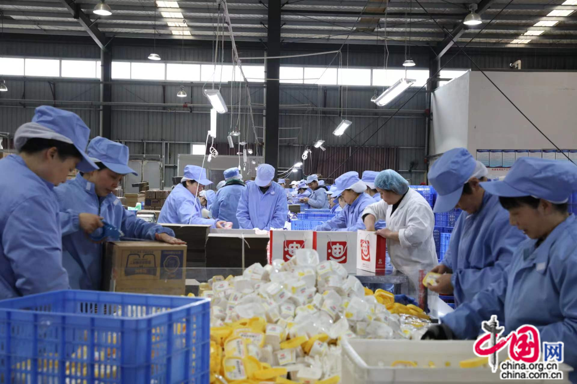 走进四川迪怩司食品有限公司生产车间,清新好闻的果冻香味扑面而来,煮料、调配、罐装、杀菌、冷却、包装...一道道工序有条不紊,刚做好的果冻经全自动生产线输送出来,工人熟练地进行检验、分装、打包装箱,发往全国各地。