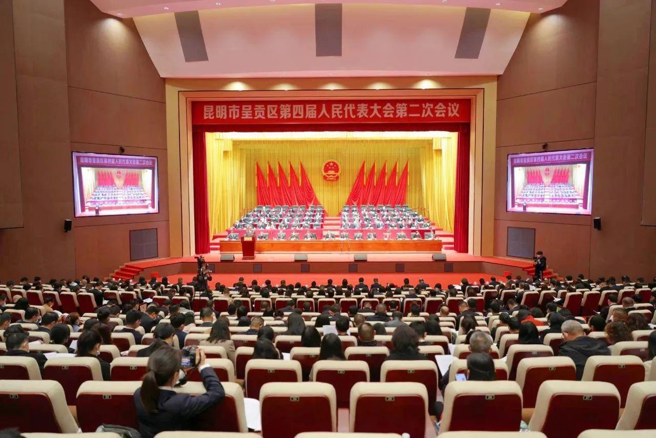 2月15日上午九点,昆明市呈贡区第四届人民代表大会第二次会议在庄严雄壮的国歌声中拉开序幕。