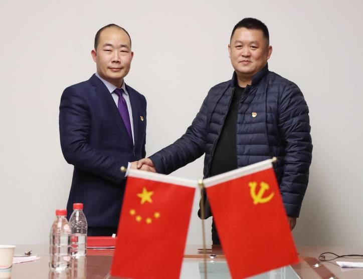 上一届党支部书记林宏举与当选党支部书记陈为民交接仪式