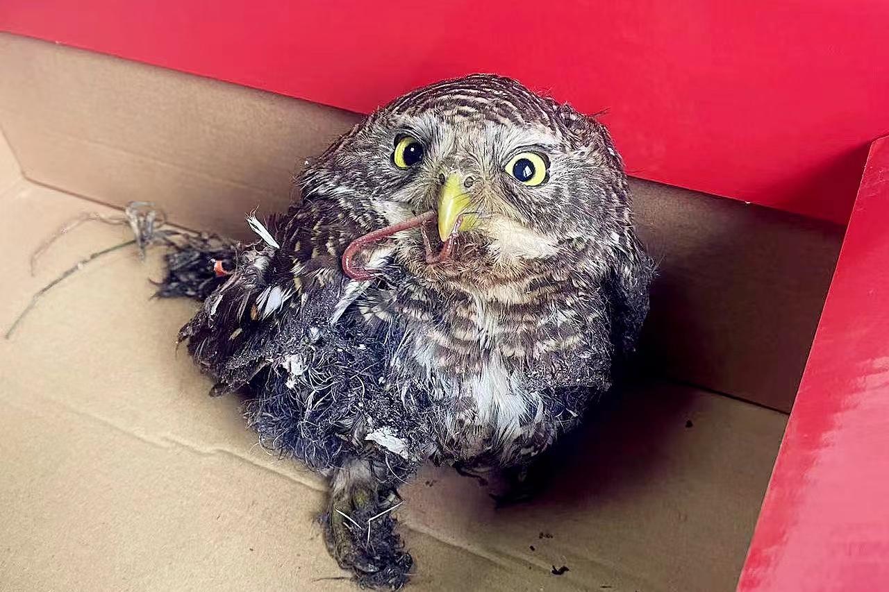 为了使猫头鹰得到更好的救助,民警将其转交到林业站工作人员手中,待进一步检查后,如果具备野外生存能力,将择机将其放归大自然。