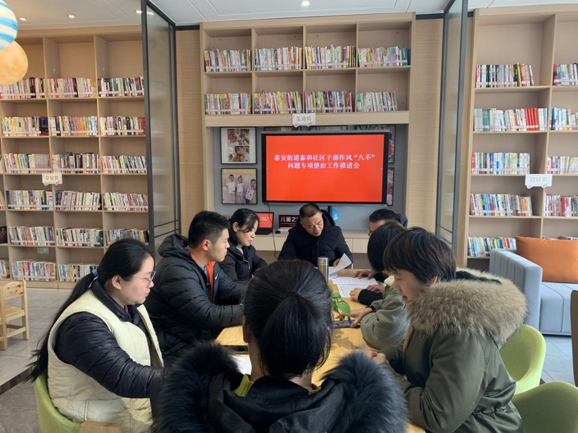 结合中共泰安街道工作委员会关于《开展“大讨论、大调研、大提升”活动工作方案》和《泰安街道干部作风“八不”问题专项整治工作方案》的通知,2月27日上午,泸州市江阳区泰安街道泰和社区召开社区干部作风“八不”问题专项整治工作推进会,并安排部署2023年社区重点工作。