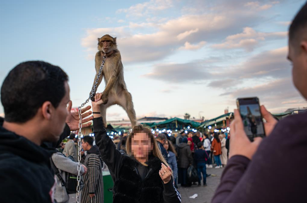 猴子作为娱乐活动的道具与游客合影/世界动物保护协会