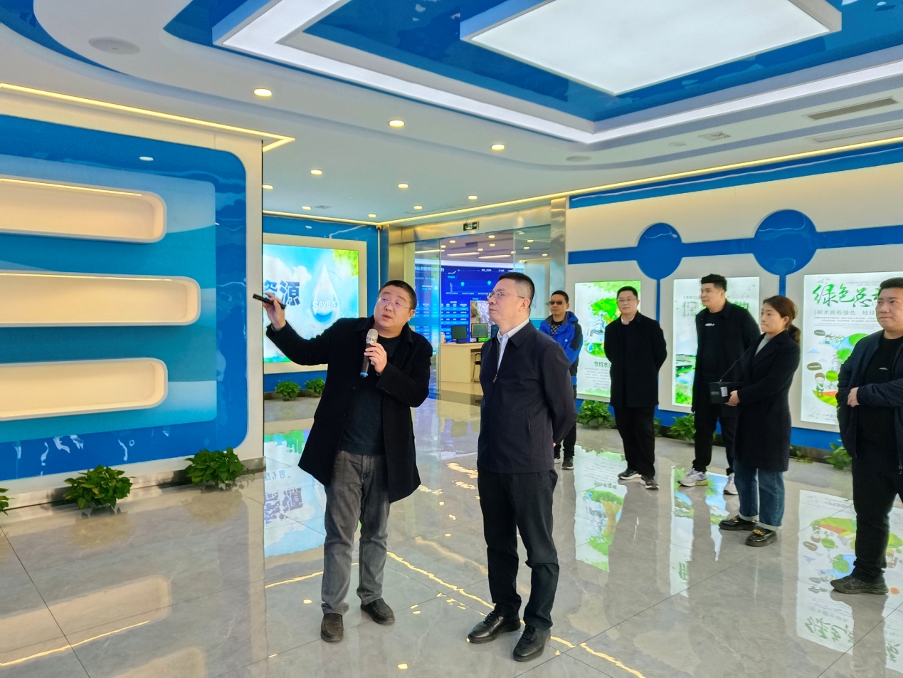 于立国一行在公司领导的陪同下先后参观了客户服务中心、生产调度中心、热线中心、茜草水厂及城南污水处理厂。