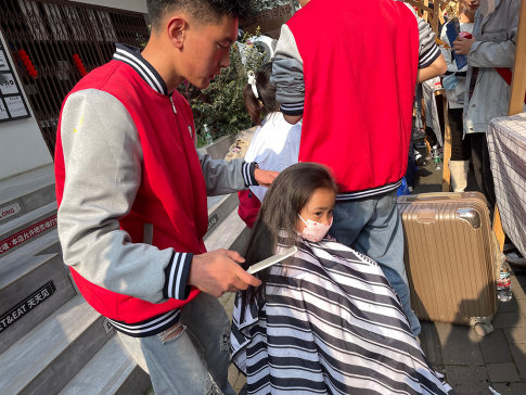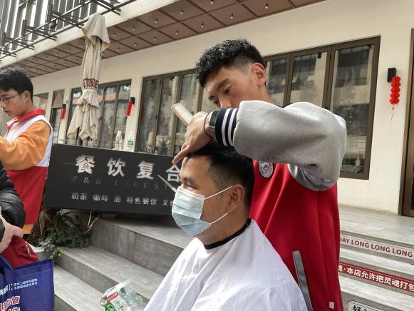 市民刘女士带着她4岁的女儿一起来到学校志愿服务点,刘女士体验了美甲,4岁的小朋友体验了剪发。看着志愿者熟练的动作,刘女士点头夸奖道:“非常满意这次的体验,特别是女儿的发型,长度刚好,刘海适合女儿的脸型。”