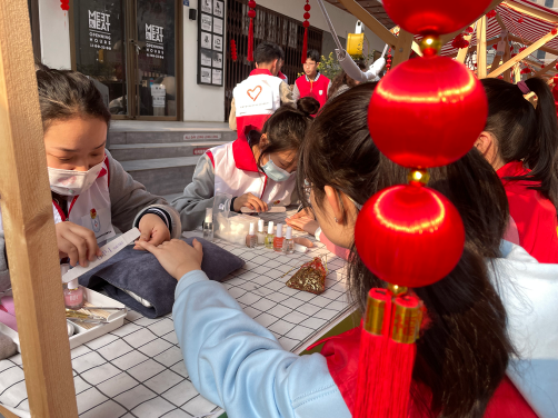 承担本次活动的是志愿服务队中的魔镜社团,社团老师兰春、董理以及校团委书记徐畅,共同带领学生在锦江河畔开设四个志愿服务点:两个美甲,一个化妆,一个理发。来往行人纷纷驻足,前来体验,对学校志愿服务连连称赞。