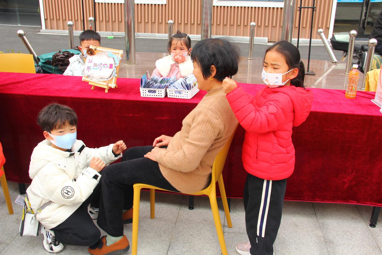 时间一点一滴过去,越来越多的老人聚集在党群参加活动。前进小步幼儿园的师生也来到现场,小朋友用稚嫩的双手为老人捶腿解乏,欢声笑语充斥在党群上空。