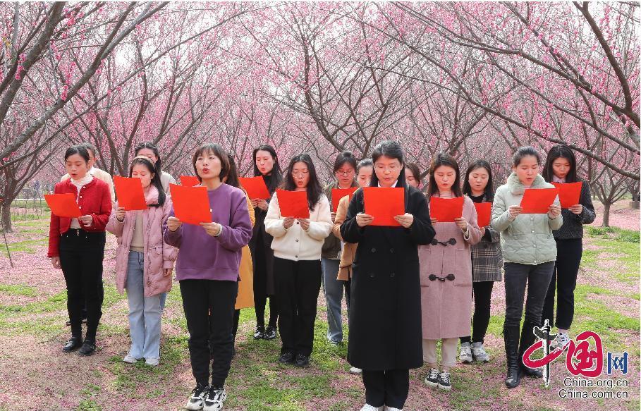 “携着三月的春风浩荡,披着三月的梅花芬芳,我们在灿烂的晨光中集结,集结在二十大旗帜下步伐铿锵!”
