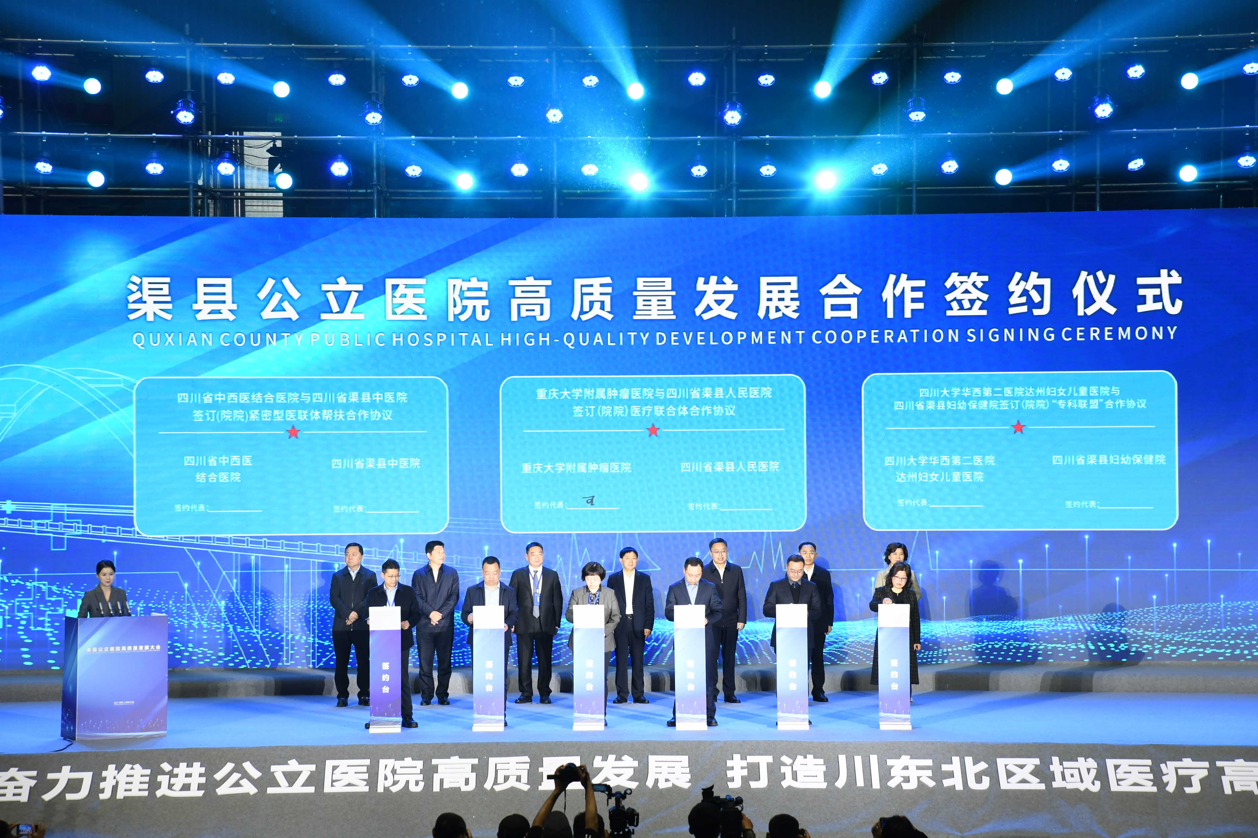 会上,渠县与四川省中西医结合医院签订了合作协议,与重庆大学附属肿瘤医院签订了共建渠县肿瘤医院合作协议。四川省中西医结合医院与渠县中医院签订紧密型医联体帮扶合作协议,重庆大学附属肿瘤医院与渠县人民医院签订医疗联合体合作协议,四川大学华西第二医院达州妇女儿童医院与渠县妇幼保健院签订“专科联盟”合作协议。县人民医院和县中医院还与招引的优秀人才签约。
