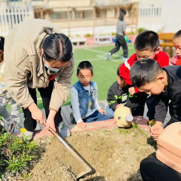 恰逢植树节的契机,园级家委会的家长们也积极参与到大班共植小树苗的活动中。家长们铲土、小朋友们测量、扶苗、埋土……在相互合作帮助下,孩子们热情高涨干劲十足,家长们也真实感受到了孩子们在园的“趣味生活”,对活动给予了高度的评价,也对老师的辛勤付出表示衷心感谢。