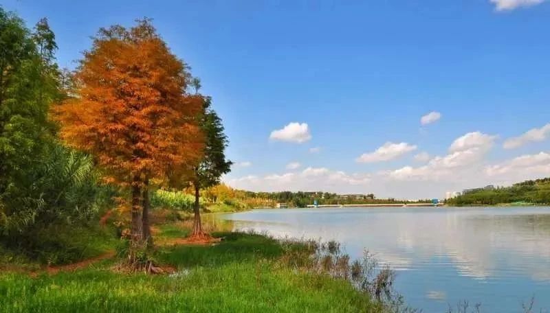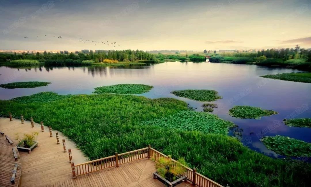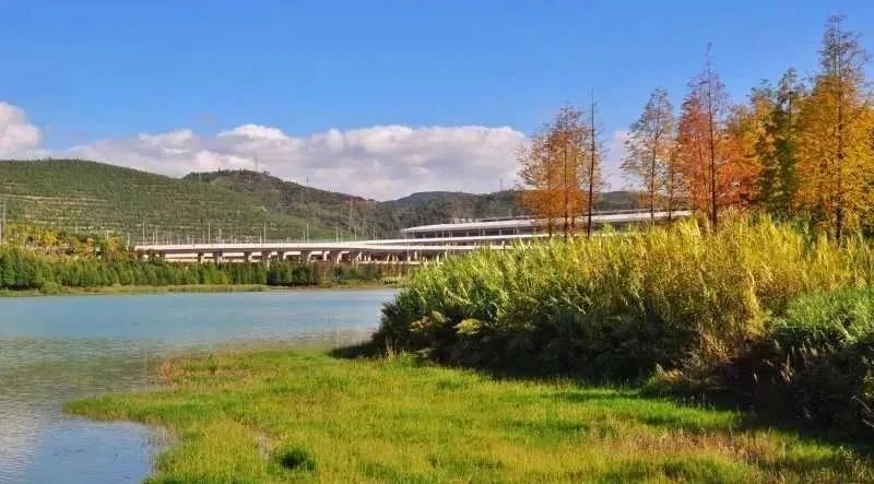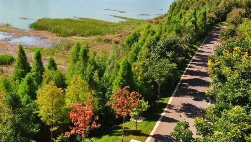 菖蒲、芦苇、睡莲等植物点缀于岸边道旁