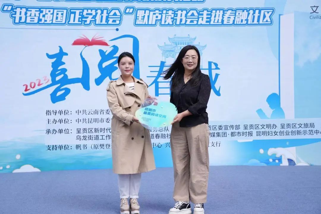 活动现场为春融社区授“昆明市最美社区阅读空间”牌并启动了春融社区2023年“最美阅读家庭”评选活动。