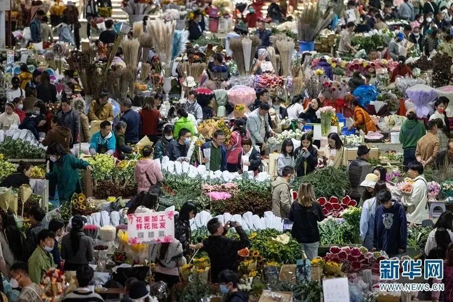 热闹喧嚣的斗南花卉市场(摄于2月13日)。新华网 赵普凡 摄