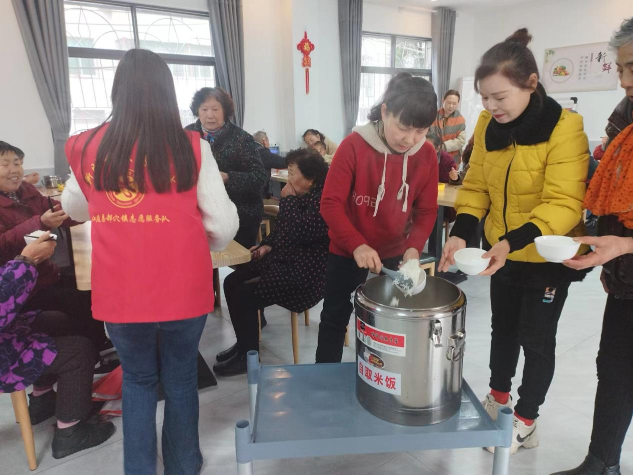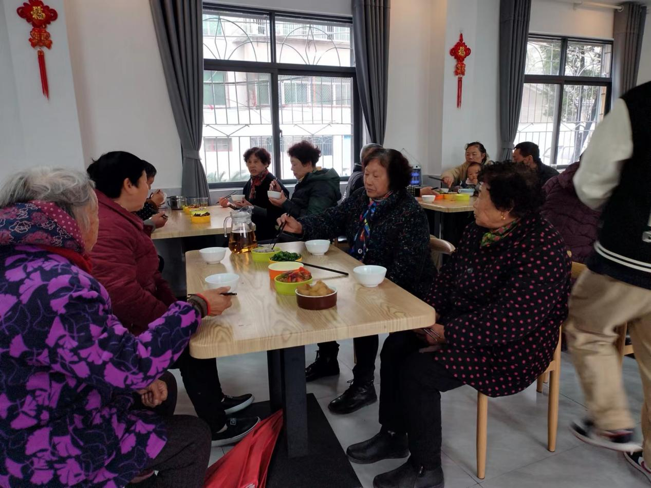 再是让老年人吃得幸福。随着国家经济社会发展,人民物质生活条件不断改善,老年人的基本物质生活得到保障,精神文化需求日益增加。老人时间充裕,如何让老年人“老有所乐”,老年幸福食堂起到了沟通情感、交流思想、愉悦精神的平台作用。江陵县民政局在马家寨乡同心村、秦市乡中联村,结合共同缔造活动,村里逢8或逢9的日子,组织全村老年人免费到老年幸福食堂集体就餐,弘扬尊老孝老的传统,同时开展一起包爱心饺子、开展文娱健身等活动,老人在吃饭之余,老年幸福食堂逐渐成为了老年人精神交流的“栖息地”,在这里品出了另一种“幸福滋味”。
