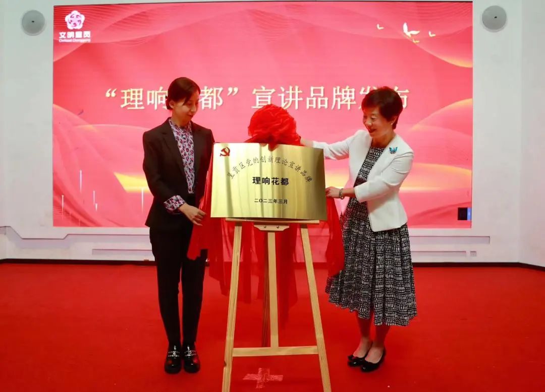 市委宣传部副部长姚晓怡与呈贡区委常委、区委宣传部部长李晓云,共同为呈贡区“理响花都”宣讲品牌揭牌。