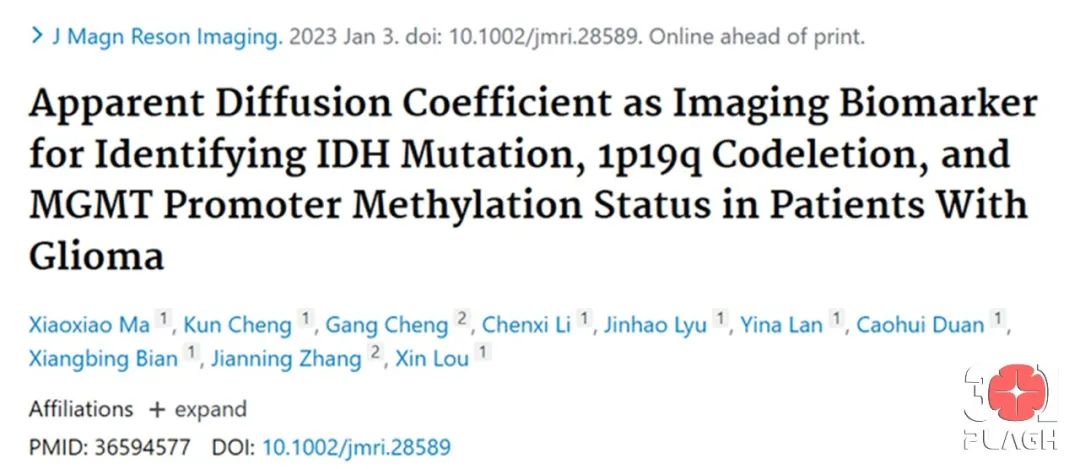 针对脑胶质瘤,基于磁共振成像的扩散加权序列分析了WHO2-4级成人型弥漫脑胶质瘤患者不同分子分型的ADC值差异,发现ADC值可作为有效的影像标志物用于鉴别IDH突变和1p19q共缺失状态,为术前精准预测脑胶质瘤患者分子分型提供了影像学依据。相关研究结果娄昕教授和张剑宁教授作为共同通讯作者在国际医学磁共振学会会刊JCR1区期刊《Journal of Magnetic Resonance Imaging》发表。