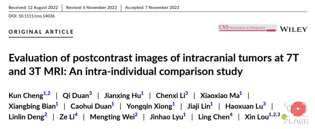 第一医学中心于2022年初安装了临床科研双模7T磁共振扫描仪。近期,娄昕教授与陈凌教授作为共同通讯作者在中科院1区期刊《CNS Neuroscience & Therapeutics》发表论著,验证了7TMR对于脑肿瘤疾病独特的诊断价值,为其临床推广以及未来精准诊断奠定了研究基础。该论文被选为该期亮点论文作为封面文章发表。