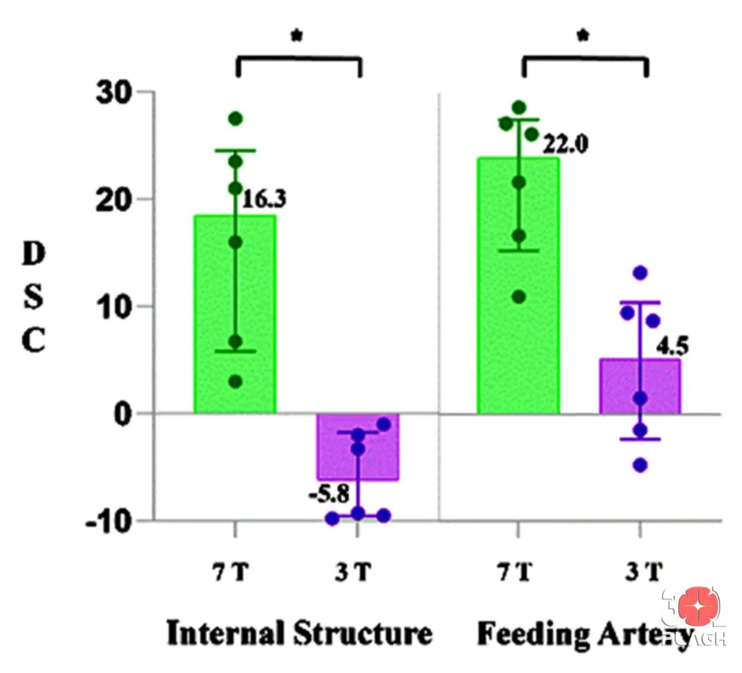 该研究通过7T和3T脑肿瘤磁共振成像的对比研究,从脑肿瘤的滋养动脉显示、肿瘤内部结构显示等细节方面进行了评价。研究结果表明7T MR图像明显提升了脑肿瘤微小结构的可视化程度,有助于临床提高肿瘤穿刺活检的准确性。