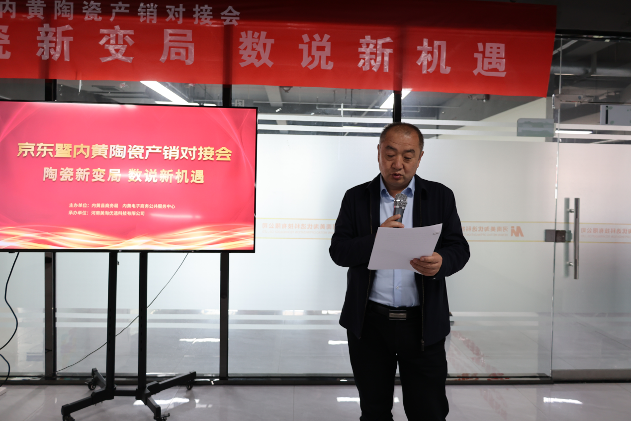 2023年3月29日,由内黄县商务局主办,河南美淘优选科技有限公司承办的京东暨内黄陶瓷产销对接会在内黄县电子商务公共服务中心成功举办。内黄县副县长葛志勇、商务局党组书记李腾、京东零售居家事业部代表以及内黄县陶瓷40多家企业及经销商等参加产业对接会。