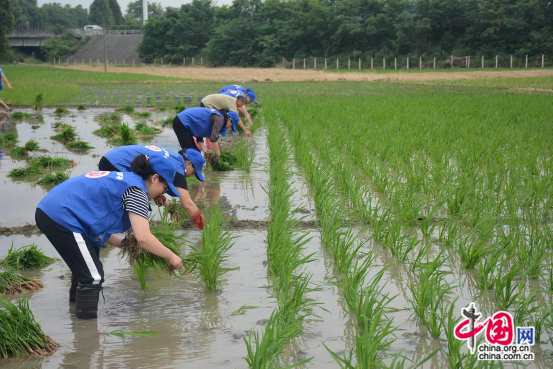志愿者帮助农村孤寡老人插秧
