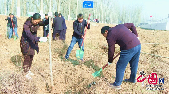 宝坻区农村社会事业发展服务中心驻牛道口镇贾良庄村、下五庄村工作队成员和牛道口镇政府机关干部来到贾良庄村南林地,和贾良庄村“两委”负责同志一起手拿铁锹,挽起衣袖,配合默契,栽下一株株树苗,现场一派热火朝天的劳动景象。