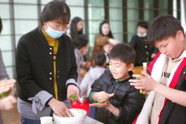 不一会儿,一股淡淡的艾草香扑鼻而来,熟透的青团散发着浓浓的艾香,直沁心脾,大家看着碧绿碧绿的青团出炉,心里满满都是成功的喜悦!大家一同品尝着自己的劳动果实,现场洋溢着阵阵笑声。“这个活动让我们家长和孩子充分互动,孩子的动手能力得到了提高,也学到了中国的传统文化和垃圾分类的知识,教育孩子们做一个文明的传承者,大家做的青团都很好吃,孩子说要带回家给奶奶尝尝呢”。家住北银公寓小区的项妈妈开心地说道。