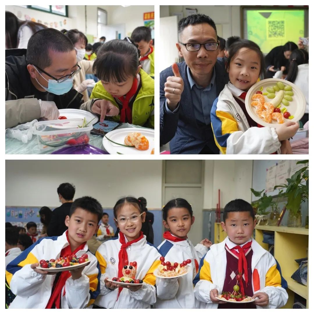 “我的是大鹏展翅!”“我爸爸用香蕉和橘子做了一个四轮车”“我和妈妈用哈密瓜和蓝莓做了一个可爱的水果篮!”……在接下来的亲子活动中,家长和孩子们齐心合作,充分发挥自己的想象力和创意,利用各种水果,创作了许多新颖奇特的作品。同时通过亲子创意活动,让孩子们体会劳动的乐趣,学会思考、协作、创造、分享,更为孩子们今后利用身边的物品,自己亲手制作礼物送给爸爸妈妈打开了思路。