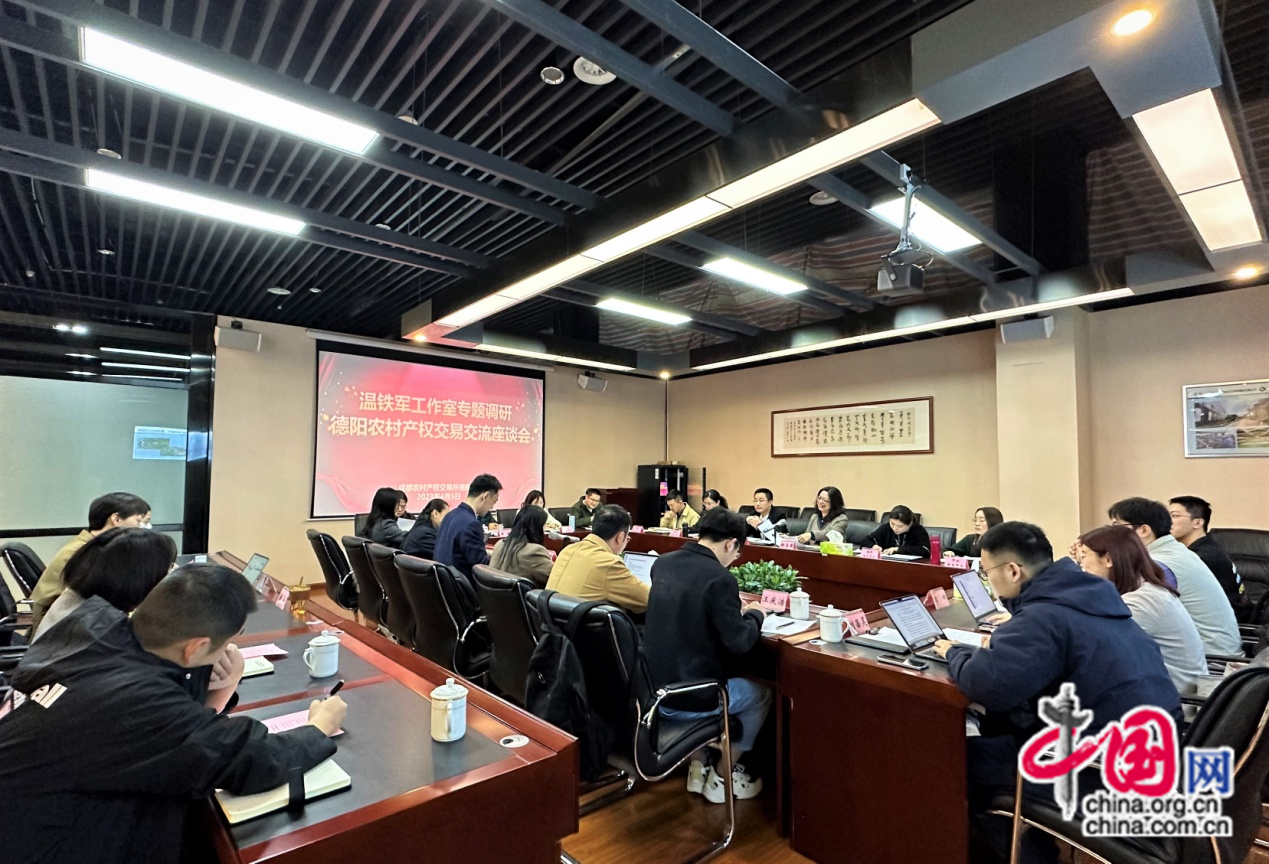 调研组分别与成都农交所德阳所、“三书模式”创建团队及德阳市纪委监委机关、市委组织部、市发改委、市司法局、市财政局、市自然资源局、市水利局、市农业农村局、市乡村振兴局、市金融局等部门相关负责同志进行座谈,深入了解成都农交所德阳所设立背景、发展历史与现状、政府部门赋能等情况。