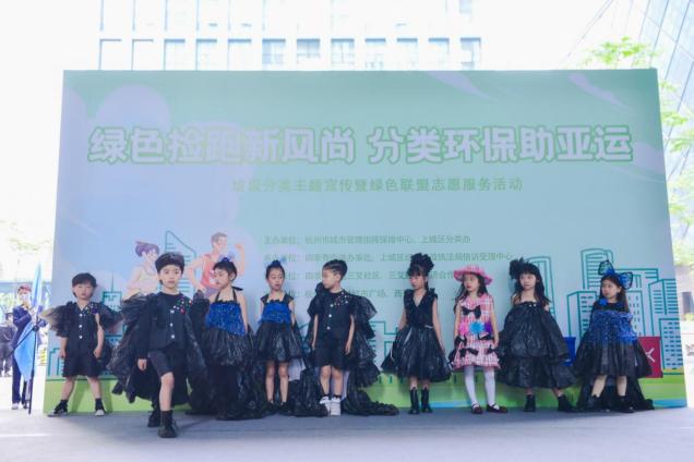 活动伊始,上城区综合行政执法局正处级党委委员陈新为本次活动致辞,做好垃圾分类,从自身做起、从现在做起、从点滴做起,为共建低碳绿色环保贡献自己的力量。接着,各级领导为庆春商圈共建绿色联盟授牌,社区亚运、妇联、垃圾分类等志愿者携手一起发出“绿色环保亚运”倡议,响亮的倡议声也传递着绿色环保理念,代表着共同守护地球母亲的决心。随后,精彩的儿童环保设计时装秀引燃了全场氛围,别样的环保视觉“盛宴”,在孩子们的奇思妙想下,“废物”都变成了创意走秀服,独具风格。