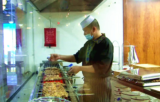 位于宝坻甘疆风情区的丝路尼雅餐厅负责人杨兴超说:“劝宝购物广场还有宝坻区供销社共同给我们提供的平台,里面有我们新疆的特色美食,比如说我们的烤馕、烤包子、手抓肉、烤羊排、馕坑烤肉这些,都是从新疆带过来的美食。通过这个项目把新疆的一些美食文化带到咱们宝坻,带到咱们天津,让这边当地人能够来我这个店里,体验到咱们新疆的口味、新疆的感觉、新疆的美食。”