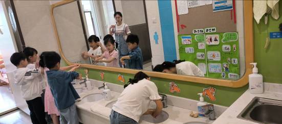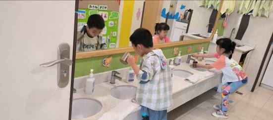 在户外环节,各班保育员耐心引导孩子们参与活动,灵活站位,便于给予孩子们细心的保护;“小朋友们,不要急,一个一个在洗手池洗洗小手!”在洗手环节,保育员们有序引导,轻声提醒,并时刻观察孩子们的状况,不让任何一个孩子走出自己的视线;“荤素搭配,更有营养,身体才能更健康哦!”在就餐环节,保育员们一一查看每个孩子的就餐情况,了解他们的饮食偏好,帮助他们吃得更营养;餐后,保育员们监督孩子们认真漱口,预防龋齿。