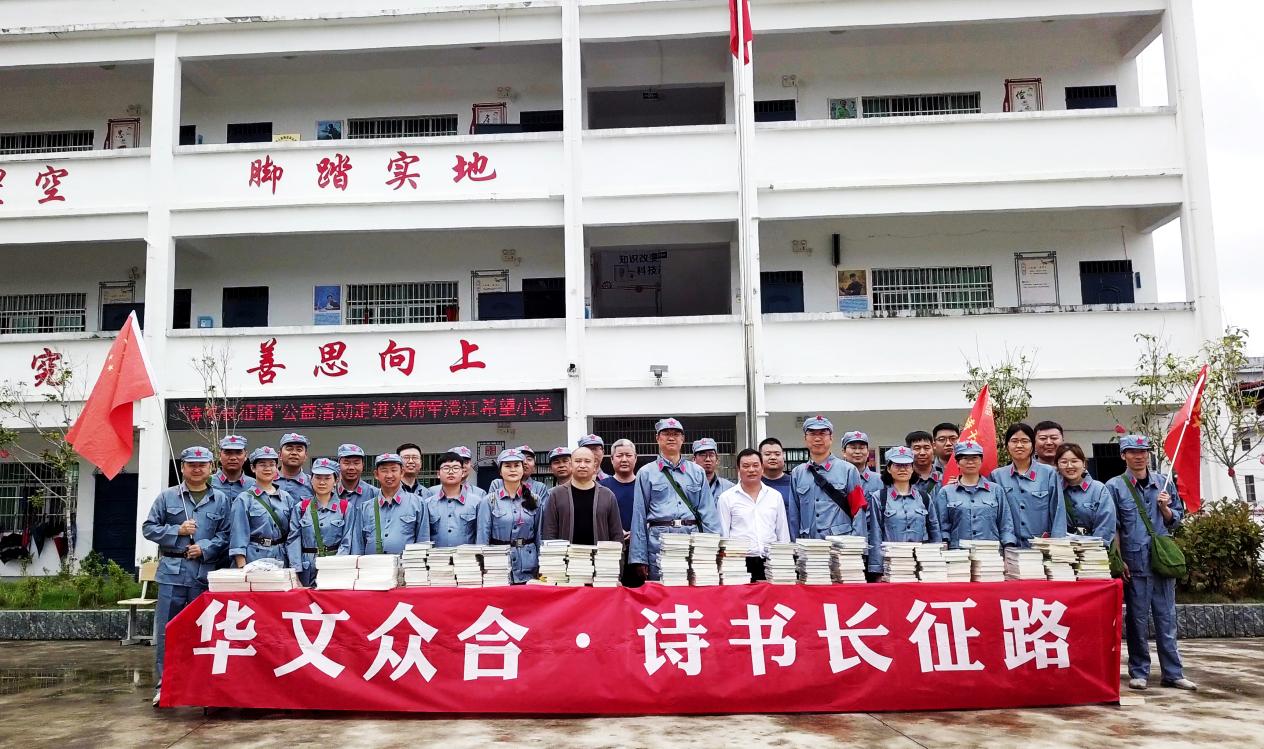 活动发起人、华文众合董事长向大凤发表了讲话,“最后一口米做军粮,最后一尺布做军装,最后一个儿子上战场。赣南地区的人民为我们中国的红色革命作出了巨大贡献,希望咱们的孩子们在‘仰望星空,脚踏实地’这一校训的指引下、在王校长的培养下,早日成为栋梁之材,走好新时代的长征路”。最后,诗书长征路第二期全体成员为火箭军澄江希望小学的孩子们捐献了两百余本图书,这些图书由各成员从全国各地带往于都,希望革命老区的孩子们继承先辈艰苦奋斗的精神,爱阅读、多读书,为中华民族之复兴、中国之强大而努力学习!(王丁桃)