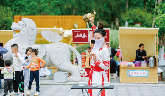 此外,为契合本次朝山节活动主题及彭山当地民俗特色,还特邀非遗竹编传承人、非遗泥塑等川内著名非遗大师为游客现场展示、讲解竹编、泥塑非遗历史及竹编、泥塑产品制作方式教学。硬气功达人、川剧变脸艺人、长嘴壶茶艺老师分时段、地点在园区内进行表演,为游客带来极致非遗文化体验。