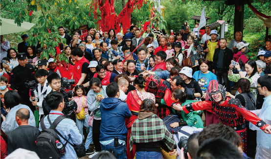 本次三月三朝山节活动在游玩互动体验上,还增添了祈福抄经、击鼓祈福、摸福摸寿、国风市集、古风投壶等有奖互动体验活动。结合景区内世界罕见双佛摩崖造像——齐山双佛,开展线上热门玩法“最美佛脚”短视频大赛。线上线下齐互动,为游客朋友增添更多欢乐。