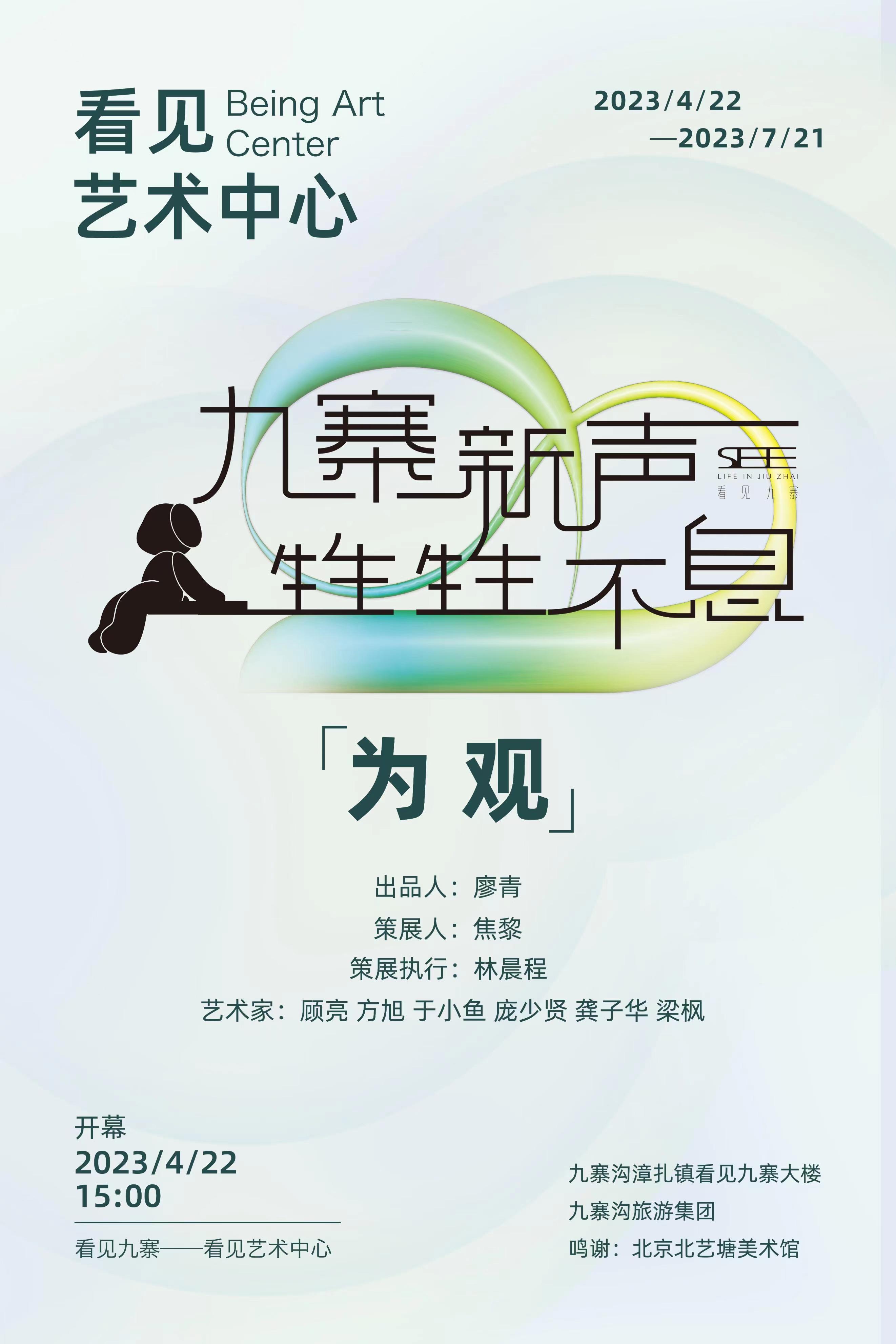 本次活动通过《为观》——《为见》——《为品》三个篇章展现当代九寨生活:“观”为看,是物理空间的成像看见;“见”为见天地、见众生、见自己,是用心看世界的向内求索;“品”为行,是“知者行之始,行者知之成”的知行者,通过三个维度构筑文化九寨新生活,展现九寨的欣欣面貌,让世界上更多的人看见九寨。而参与展览的艺术家,以作品的方式将艺术元素引入展览空间,让观众不仅作为观看者参与展览,也可以在现场与艺术家的作品产生互动。