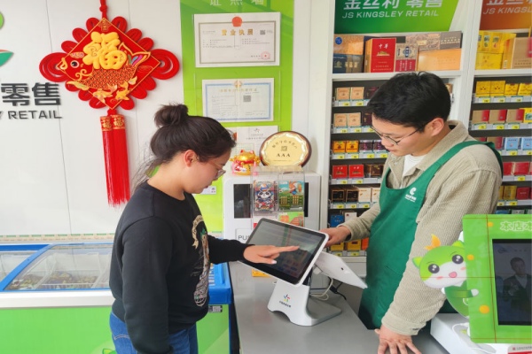 “多亏了宜兴烟草的客户经理考虑到我附近就是居民区,上门帮我引进中国体彩的自助销售终端机,给我带来不少生意呢,还有我门口这张小桌子,专门帮附近的顾客存放快递的,您以后有什么快递不方便拿的就填我店里的地址!”